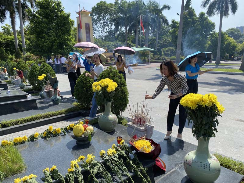 Đoàn NXB Thông tin và Truyền thông và Viện Công nghiệp phần mềm và Nội dung số Việt Nam dâng hương tại Nghĩa trang Mai Dịch