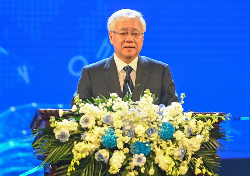 Đồng chí Đỗ Văn Chiến, Bí thư Trung ương Đảng, Chủ tịch Uỷ ban Trung ương Mặt trận Tổ quốc Việt Nam phát biểu tại lễ trao giải