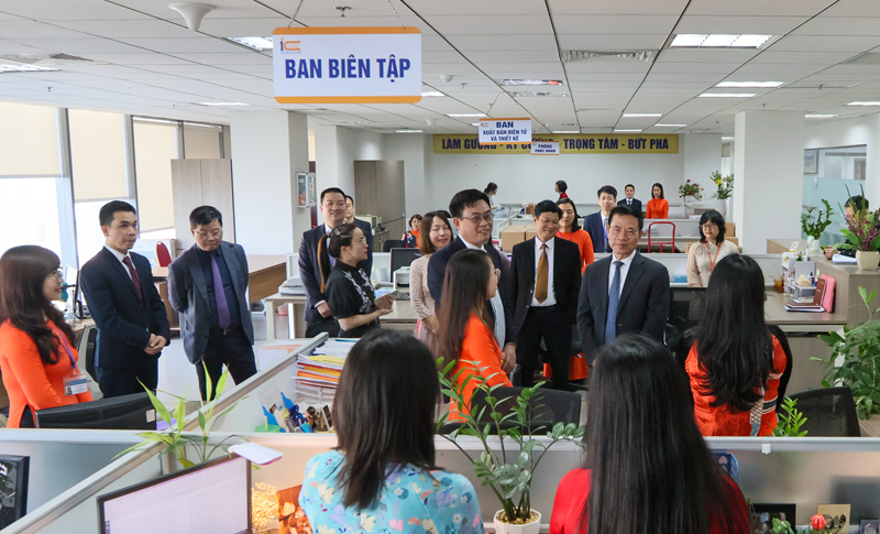 Lãnh đạo Bộ Thông tin và Truyền thông thăm không gian làm việc của cán bộ viên chức.