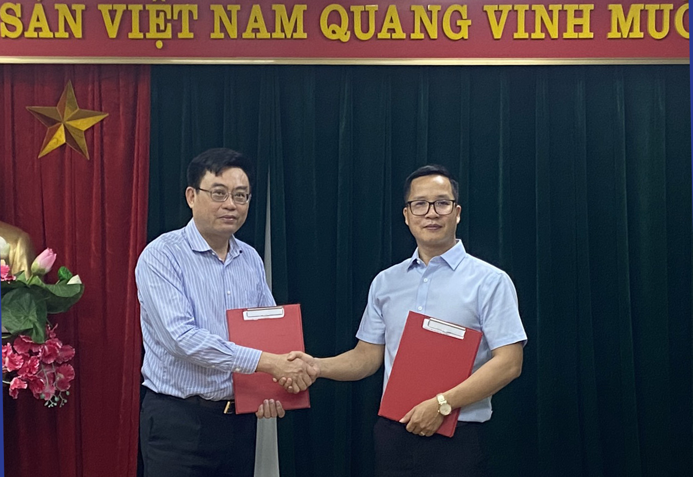 Lãnh đạo hai đơn vị trao biên bản ghi nhớ hợp tác