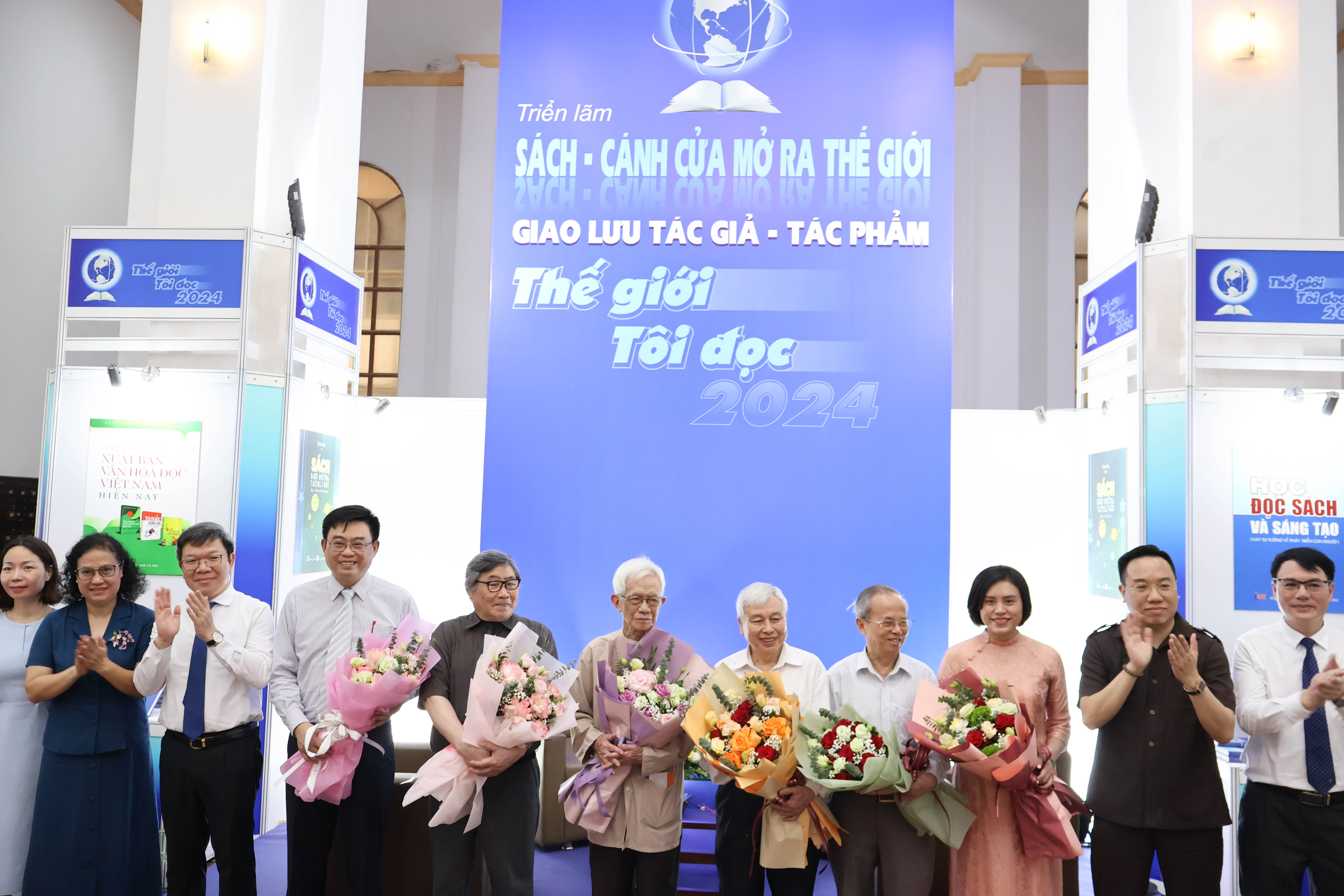 Cục trưởng Cục XB,I,PH và Lãnh đạo Thư viện Quôc gia Việt Nam tặng hoa chúc mừng các diễn giả và tác giả của cuốn sấch