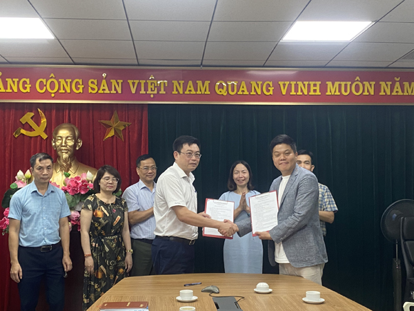 Lãnh đạo hai đơn vị trao biên bản ghi nhớ hợp tác
