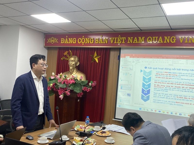 Tại Hội nghị, ông Trần Chí Đạt - Giám đốc, Tổng biên tập NXB đã trình bày báo cáo kết quả công tác năm 2024 của Nhà xuất bản và một số phương hướng, nhiệm vụ trọng tâm trong năm 2025, trong đó có các chỉ tiêu về đầu sách (gồm phần trăm sách tự doanh và sách liên kết, sách điện tử); chỉ tiêu về doanh thu; cùng kế hoạch thực hiện một số chương trình, nhiệm vụ của Bộ và của ngành Xuất bản.