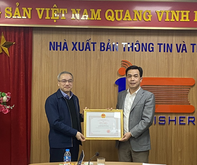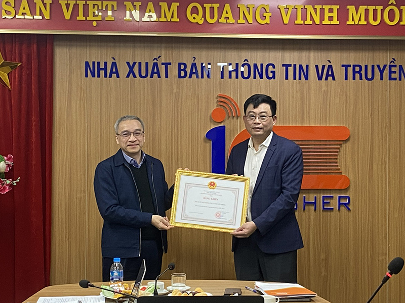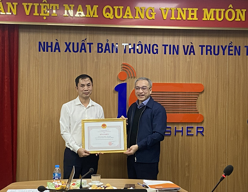 Thứ trưởng Phan Tâm trao Bằng khen của Bộ Thông tin và Truyền thông giai đoạn 2022 - 2023 cho Ông Trần Chí Đạt - Giám đốc, Tổng biên tập Nhà xuất bản