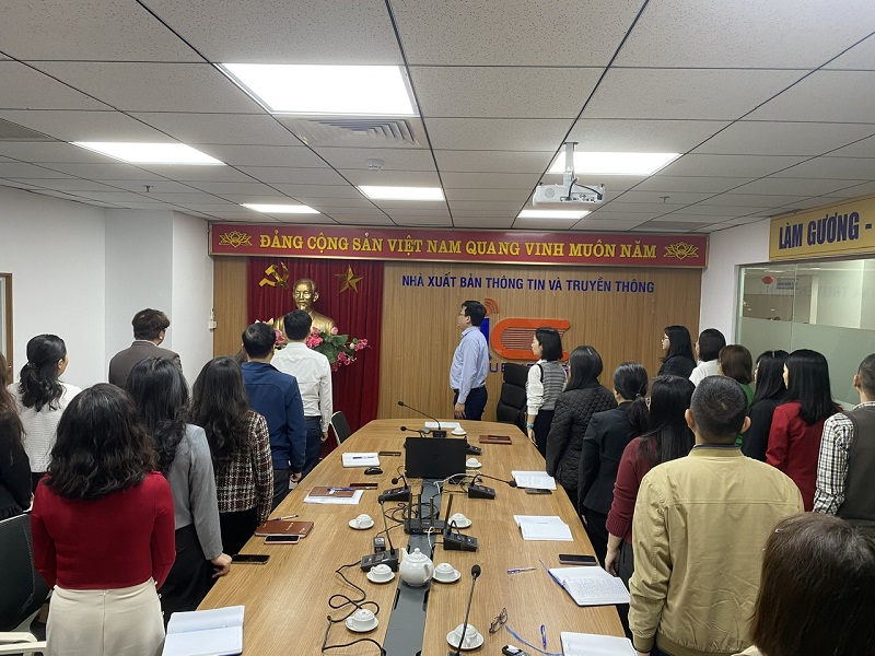 Lãnh đạo NXB TT&TT cùng toàn thể cán bộ viên chức NXB thực hiện nghi thức Chào cờ và hát Quốc ca