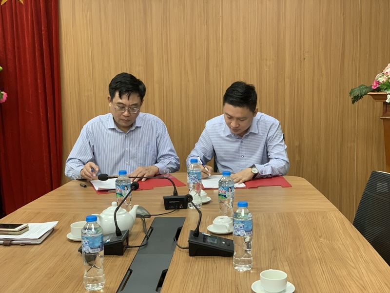 TS. Trần Chí Đạt, Giám đốc - Tổng Biên tập NXB KHCNTT và ông Lê Bá Sâm - Phó Viện trưởng Viện PSD ký kết Biên bản ghi nhớ hợp tác