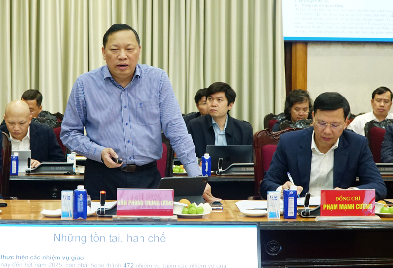 Đồng chí Ngô Hải Phan, Cục trưởng Cục Chuyển đổi số - Cơ yếu, Văn phòng Trung ương Đảng, Thành viên Ban Chỉ đạo Trung ương, Tổ phó Tổ giúp việc báo cáo tình hình thực hiện các nhiệm vụ đến thời điểm ngày 4/12/2025, đặc biệt nhấn mạnh đến những tồn tại, hạn chế cần giải quyết.