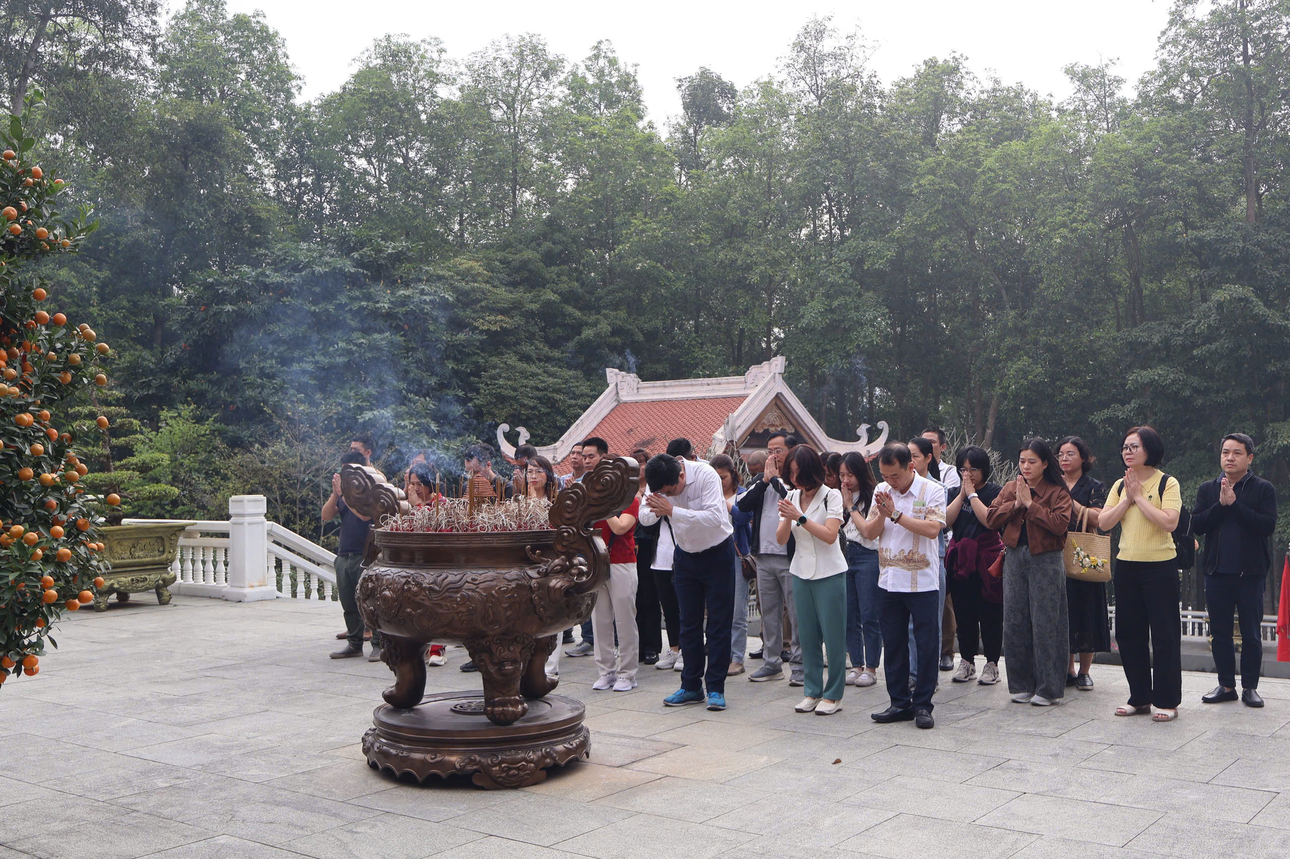 Tiếp đó, đoàn di chuyển tới Đền Trung (Ba Vì) - một địa điểm tâm linh gắn với tín ngưỡng thờ các Vua Hùng và truyền thống “uống nước nhớ nguồn” của dân tộc. Trong không gian linh thiêng giữa núi rừng Ba Vì, đoàn đã thành kính dâng hương, cầu mong một năm mới bình an, thuận lợi và nhiều thành công trong công việc.