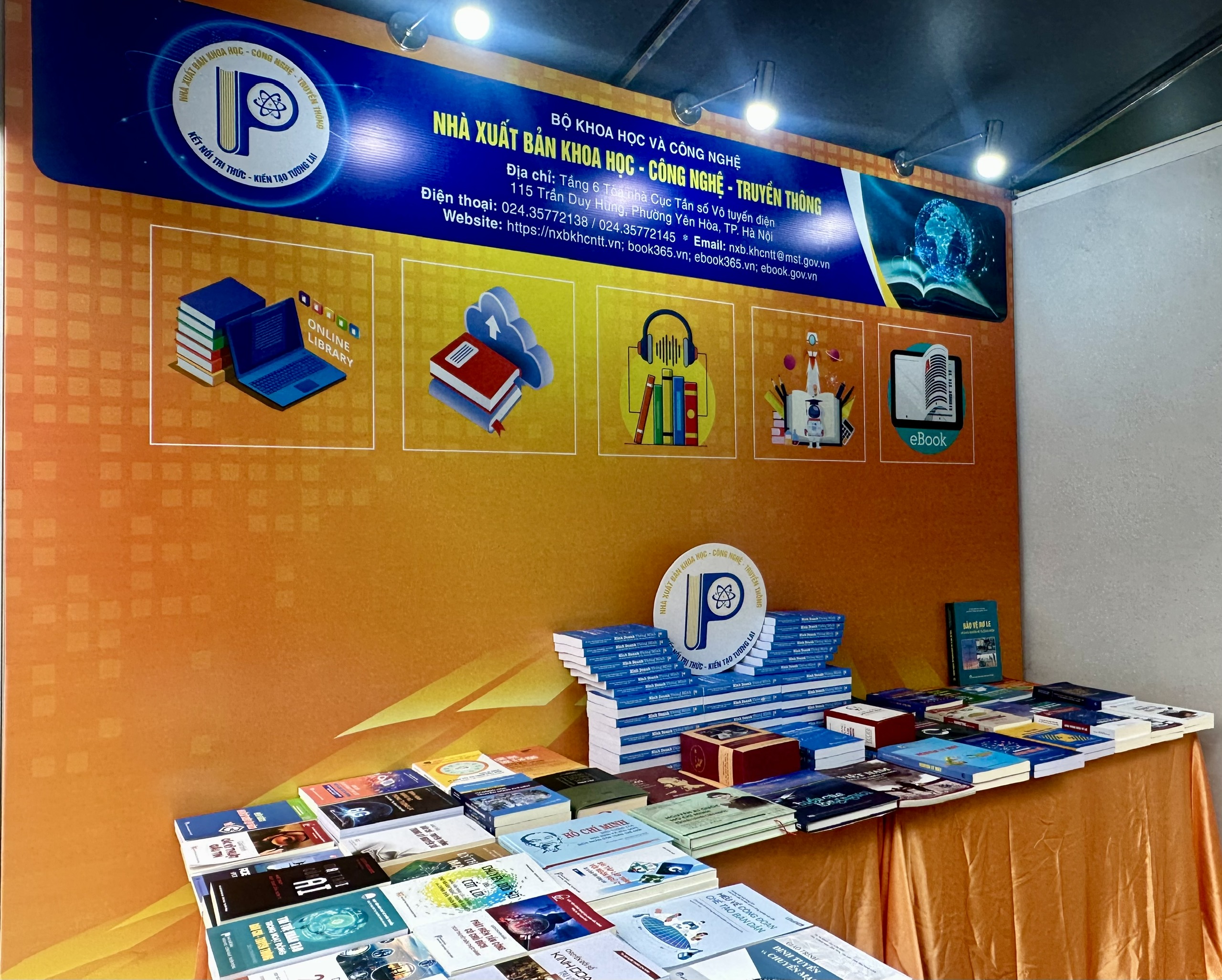 Với thiết kế mở hiện đại, gian hàng được bố trí nổi bật ngay khu trung tâm, trưng bày đa dạng các đầu sách giấy thuộc các lĩnh vực khoa học, công nghệ, kinh tế và chuyển đổi số. Cách sắp xếp khoa học theo từng nhóm chủ đề giúp người đọc dễ dàng tiếp cận, lựa chọn và trải nghiệm trực tiếp từng ấn phẩm.