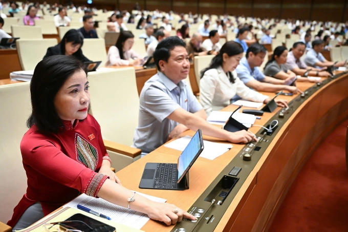 Các đại biểu Quốc hội bấm nút tại hội trường Diên Hồng. Ảnh: Cổng TTĐT Quốc hội