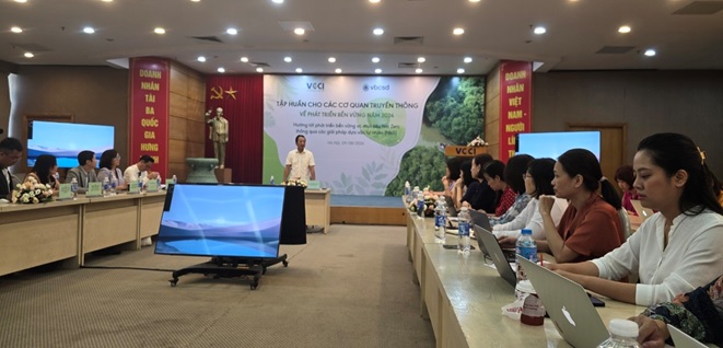 Ngày 09/08/2024, Hội đồng Doanh nghiệp vì sự phát triển bền vững Việt Nam đã tổ chức Hội nghị tập huấn cho các cơ quan truyền thông về phát triển bền vững năm 2024 nhằm cung cấp cho các cơ quan thông tấn, báo chí các thông tin cập nhật về các chính sách, định hướng phát triển bền vững của Đảng, Chính phủ, cũng như thực tiễn và các thông lệ tốt trong kinh doanh bền vững của cộng đồng doanh nghiệp tại Việt Nam. Qua đó, hỗ trợ các cơ quan truyền thông tác nghiệp hiệu quả hơn, đồng thời thúc đẩy sự hợp tác đồng hành chặt chẽ hơn giữa các cơ quan truyền thông với cộng đồng doanh nghiệp trên hành trình kinh doanh có trách nhiệm. Tập huấn cho các cơ quan truyền thông về phát triển bền vững là sáng kiến của Hội đồng Doanh nghiệp vì sự phát triển bền vững Việt Nam thuộc Liên đoàn Thương mại và Công nghiệp Việt Nam.