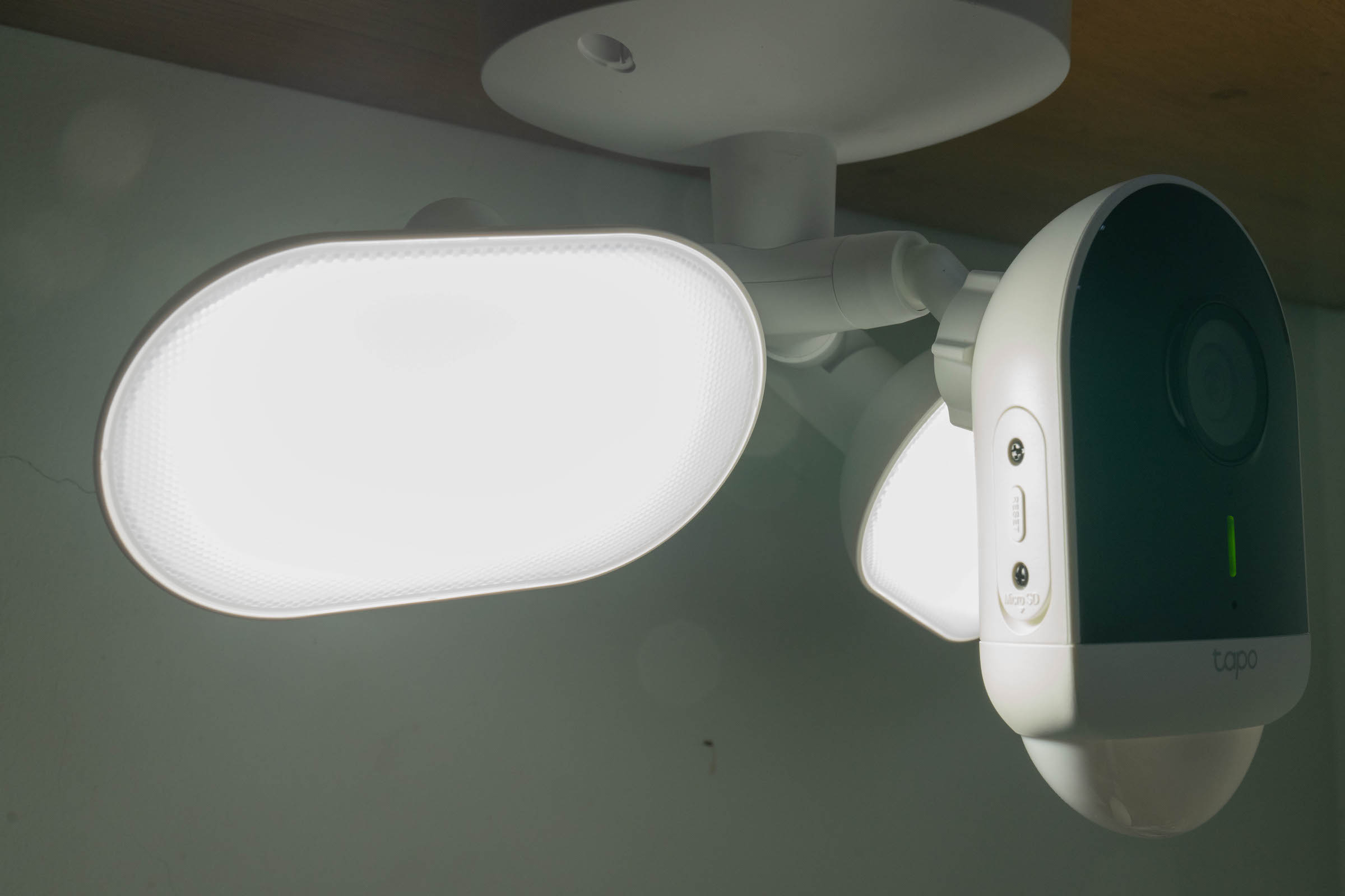 Hai đèn pha có độ sáng tối đa 2.800 lumen với khả năng chiếu xa 10 mét, giúp người dùng luôn có hình ảnh màu khi cần, thay vì chỉ có ảnh hồng ngoại. Phía dưới camera có một cảm biến chuyển động với góc rộng 270 độ và sẽ tự động kích hoạt đèn pha khi phát hiện chuyển động.