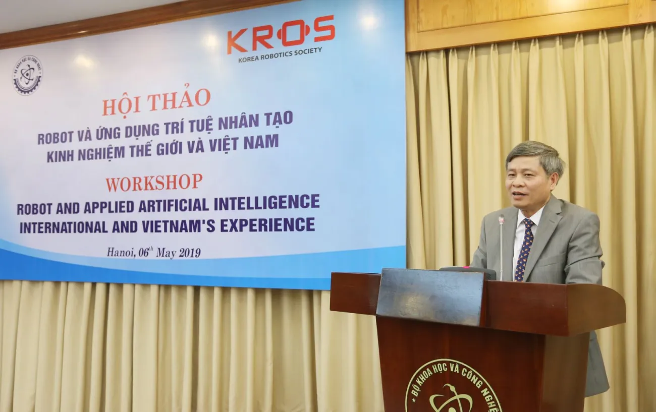 Để nghiên cứu về robot cũng như ứng dụng trí tuệ nhân tạo thành công, Việt Nam có thể tham khảo kinh nghiệm của Hàn Quốc - đất nước có ngành công nghiệp robot phát triển mạnh mẽ với tỷ lệ 631 robot/10.000 nhân viên (cao hơn 8 lần so với tỷ lệ trung bình của thế giới).Chiều 6/5, tại Hà Nội, Bộ Khoa học và Công nghệ (KH&CN) đã tổ chức Hội thảo “Robot và ứng dụng trí tuệ nhân tạo - Kinh nghiệm quốc tế và Việt Nam&rdquo.Tham dự Hội thảo, về phía Việt Nam có Thứ trưởng Bộ KH&CN Phạm Công Tạc, PGS.TS Tạ Cao Minh - Phó Chủ tịch, Tổng thư ký Hội tự động hóa.Về phía đại biểu khách quốc tế có GS.Byung - Ju Yi, Chủ tịch Hiệp hội Robot Hàn Quốc (KROS); GS.Bum Jae You, Chủ tịch (được bầu khóa tới) của KROS, Viện Khoa học và Công nghệ Hàn Quốc - KIST; đại biểu đại diện cho các bộ, ngành; các chuyên gia, nhà khoa học; đại diện doanh nghiệp, viện nghiên cứu, trường đại học Việt Nam và Hàn Quốc.Thứ trưởng Bộ KH&CN Phạm Công Tạc phát biểu tại Hội thảo.Phát biểu khai mạc Hội thảo, Thứ trưởng Phạm Công Tạc cho biết, Hàn Quốc là một trong những quốc gia có tỷ lệ ứng dụng robot trên đầu người cao nhất thế giới và ngành công nghiệp robot của Hàn Quốc đang phát triển hết sức mạnh mẽ.Hàn Quốc vì thế có những bài học kinh nghiệm quý giá để các nước đang phát triển tham khảo cũng như mở ra nhiều cơ hội hợp tác trong lĩnh vực robot và trí tuệ nhân tạo.“Hội thảo sẽ tạo cơ hội cho đại biểu các bộ, ngành, các viện nghiên cứu, trường đại học và doanh nghiệp hai nước cùng trao đổi, học hỏi kinh nghiệm và hướng tới các hợp tác cụ thể trong tương lai trong lĩnh vực robot và ứng dụng trí tuệ nhân tạo, đẩy mạnh việc nghiên cứu và ứng dụng công nghệ của cuộc cách mạng lần thứ 4 vào phát triển kinh tế - xã hội của mỗi nước, góp phần làm sâu sắc hơn nữa hoạt động hợp tác hữu nghị giữa Việt Nam và Hàn Quốc”, Thứ trưởng nhấn mạnh.GS.Byung - Ju Yi, Chủ tịch Hiệp hội Robot Hàn Quốc bày tỏ niềm tự hào khi được tham dự buổi Hội thảo, đặc biệt trong bối cảnh công nghiệp robot và trí tuệ nhân tạo đang phát triển mạnh mẽ ở Việt Nam.GS.Byung - Ju Yi hy vọng rằng, từ những kinh nghiệm của Hàn Quốc, Việt Nam có thể đẩy mạnh công tác nghiên cứu robot, trí tuệ nhân tạo ở trong nước.GS.Byung - Ju Yi cũng nhấn mạnh, sự kiện này có ý nghĩa vô cùng to lớn trong sự hợp tác giữa hai Bên.Trong thời gian qua, với vai trò chủ đạo của Chính phủ, Hàn Quốc đã phát triển các hoạt động nghiên cứu về robot cũng như trí tuệ nhân tạo và đã đạt được một số thành tựu đáng kể.Những kinh nghiệm đó của Hàn Quốc có thể trở thành bài học tham khảo để đóng góp cho những nỗ lực của Chính phủ Việt Nam trên con đường phát triển hoạt động nghiên cứu về robot cũng như ứng dụng trí tuệ nhân tạo.Tại Hội thảo, các chuyên gia, nhà khoa học đã trình bày báo cáo tham luận về tình hình nghiên cứu phát triển robot và ứng dụng trí tuệ nhân tạo tại Hàn Quốc, Nhật Bản, Canada và Việt Nam… Đồng thời, các chuyên gia cũng đã thảo luận một số nội dung về: sự giúp đỡ của Chính phủ Hàn Quốc đối với chiến lược về phát triển robot; ứng dụng robot trong ngành công nghiệp; sự giúp đỡ của Hàn Quốc đối với Việt Nam trong đào tạo, nghiên cứu khoa học về robot và trí tuệ nhân tạo tại một số trường đại học trong thời gian tới… Các chuyên gia, nhà khoa học đều khẳng định, để phát triển robot và ứng dụng trí tuệ nhân tạo, Chính phủ có vai trò rất quan trọng, đặc biệt trong việc hỗ trợ doanh nghiệp về ứng dụng công nghệ cao.Bộ KH&CN ký kết Biên bản ghi nhớ hợp tác với Hiệp hội Robot Hàn Quốc.Trong khuôn khổ Hội thảo, Bộ KH&CN đã ký kết Biên bản ghi nhớ hợp tác với Hội robot Hàn Quốc nhằm thúc đẩy sự hợp tác về robot và ứng dụng trí tuệ nhân tạo giữa các trường đại học, viện nghiên cứu và các doanh nghiệp ở cả hai quốc gia thông qua các hình thức hợp tác như thực hiện các dự án nghiên cứu chung, dự án chuyển giao công nghệ, trao đổi chuyên gia và việc cùng phối hợp tổ chức hội thảo thường niên trong các lĩnh vực này.Trong hơn 25 năm qua, quan hệ hợp tác Việt Nam và Hàn Quốc đã tiến triển hết sức tốt đẹp và đạt được nhiều kết quả tích cực trong các lĩnh vực kinh tế, văn hóa - thể thao, KH&CN.Hợp tác KH&CN giữa hai nước ngày càng được đẩy mạnh thông qua thành lập Viện Khoa học và Công nghệ Việt Nam - Hàn Quốc (VKIST) và đã có nhiều hoạt động hợp tác đa dạng thông qua các dự án nghiên cứu chung giữa các nhà khoa học hai nước.Cách mạng Công nghiệp (CMCN) lần thứ 4 tác động mạnh đến nhiều quốc gia trên thế giới, trong đó có Việt Nam.Sự phát triển mạnh mẽ các công nghệ như robot, trí tuệ nhân tạo, internet vạn vật.v.v.trong kỷ nguyên số đã và sẽ làm thay đổi mọi lĩnh vực của đời sống kinh tế - 