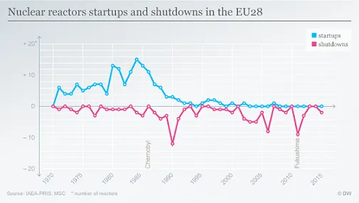 Dù giữ vai trò quan trọng trong việc cung cấp điện năng ở châu Âu nhưng điện hạt nhân vẫn phải đối mặt với nhiều khó khăn như nguồn tài chính để xử lý vấn đề lão hóa nhà máy, rủi ro về an ninh.Thảm họa Chernobyl vào ngày 26/4/1986 khiến quá trình phát triển của điện hạt nhân trên thế giới nói chung và châu Âu nói riêng phải chuyển hướng.Tai nạn này là nguyên nhân dẫn đến những cuộc tranh cãi về điện hạt nhân, và làm phá sản nhiều dự án xây dựng nhà máy điện hạt nhân khác.Tuy nhiên có một thực tế là ;nhiều quốc gia châu Âu vẫn còn kiên trì theo đuổi điện hạt nhân và ;các lò phản ứng trên khắp châu Âu đang trong quá trình lão hóa.Dẫu sao người ta không thể phủ nhận rằng, một phần ba điện năng tiêu thụ trên toàn châu Âu là ;từ các nhà máy điện hạt nhân như một báo cáo gần đây của Cơ quan Năng lượng nguyên tử quốc tế (IAEA).Áp lực tài chính.Theo báo cáo về tình hình sản xuất điện hạt nhân thế giới, trong năm 2015 chỉ còn 128 lò phản ứng vẫn còn hoạt động ở châu Âu, khoảng một nửa trong số đó (58 lò phản ứng) thuộc về Pháp.Hiện hai nhà máy điện hạt nhân đang được xây dựng do công ty điện lực Areva (Pháp) đảm trách ở Pháp và Phần Lan – lần lượt khởi công vào năm 2005 và 2007 – sẽ không hoàn thành trước năm 2018, thời gian mà chúng có thể lập tức đưa vào vận hành.Theo ước đoán ở thời điểm hiện tại, kinh phí xây dựng các nhà máy này đang bị đội giá gấp ba lần so với dự toán, tức là vào khoảng 9 tỷ eueo (tương đương 10 tỷ đô la) mỗi nhà máy.Dự án nhà máy điện hạt nhân Hinkley Point C ở Anh cũng đang phải đối mặt với vấn đề như gia tăng kinh phí xây dựng, khó khăn về tài chính đầu tư và trì hoãn kế hoạch xây dựng.Tương tự, nhà máy điện hạt nhân Flamanville, Pháp, cũng sẽ khó có thể hoàn tất trước năm 2018.Công ty điện lực Pháp EDF trong vòng 8 năm qua chưa bán thêm được bất kỳ nhà máy điện hạt nhân nào, vì vậy nếu không giành được hợp đồng xây dựng nhà máy Areva thì EDF ắt hẳn sẽ phải đối mặt với khả năng phá sản.Khi tính toán chi phí cho việc ngừng vận hành nhà máy điện hạt nhân và quản lý vấn đề chất thải phóng xạ từ các nhà máy này vào năm 2050, Ủy ban châu Âu EC đưa ra con số 268 tỷ euro.Một nghiên cứu từ European Parliament Greens đã tiết lộ, thậm chí con số này có thể lên tới 485 tỷ euro.Theo EU, các công ty điện lực chỉ tài trợ 150 tỷ euro trong tổng số chi phí này.Xây dựng nhà máy điện hạt nhân mới.Lược đồ hiển thị tình hình các lò phản ứng hạt nhân mới xây dựng (đường màu xanh) và ngừng vận hành (đường màu đỏ) ở châu Âu.Ba quốc gia thành viên châu Âu – Phần Lan, Pháp và Slovakia – hiện đang tiến hành xây dựng những nhà máy điện hạt nhân mới.Nhưng tất cả các dự án này đều đang cùng chung hoàn cảnh là phải chịu việc đội giá xây dựng và trì hoãn lịch xây dựng – dù cho việc xây dựng các lò phản ứng ở Slovakia đã bắt đầu từ năm 1986.Đến năm 2030, số lượng các nhà máy điện hạt nhân sẽ được tăng lên ở Bulgaria, Czech, Phần Lan, Pháp, Hungary, Lithuania, Ba Lan và Anh – theo tính toán của tổ chức Năng lượng nguyên tử thế giới (World Nuclear Association) dựa trên số nhà máy điện hạt nhân được cấp phép và đề xuất.Nhưng để vận hành các lò phản ứng cũ được an toàn, cơ sở hạ tầng của các lò phản ứng này cần ;được nâng cấp, Frank Peter, đại diện Prognos ở Berlin, một công ty tư vấn kinh tế có trụ sở đặt tại Thụy Sỹ, cho biết.Những lò phản ứng đang có tại châu Âu đều có tuổi thọ 30 năm, và vòng đời của chúng vào khoảng 30 đến 35 năm.Peter tin tưởng rằng, việc nâng cấp các lò phản ứng già lão không khả thi về mặt tài chính."Để mỗi nhà máy điện hạt nhân cũ làm ra điện năng trong điều kiện an toàn hạt nhân tương ứng theo công nghệ nhà máy, cần phải đầu tư khoảng 3 đến 4 tỷ euro cho việc nâng cấp," Peter cho DW biết.Cũng vì vấn đề áp lực tài chính, một lò phản ứng ở Thụy Sỹ và 4 lò phản ứng ở Thụy Điển sẽ phải ngừng vận hành vào năm 2020, sớm hơn dự kiến, chuyên gia về năng lượng nguyên tử Mycle Schneider giải thích.Tăng cường công suất điện hạt nhân.Lược đồ biểu thị mạng lưới các lò phản ứng được tăng cường công suất sản xuất điện năng.128 lò phản ứng hạt nhân đang được vận hành thuộc 14 trong số 28 quốc gia thành viên EU cung cấp hơn 1/4 lượng điện tiêu thụ ở toàn châu Âu, theo công bố của Tổ chức ;Năng lượng nguyên tử thế giới (WNA).Tổ chức này cho biết, các lò phản ứng khắp châu Âu đang không ngừng tăng cường hơn nữa công suất sản xuất điện năng của mình, trong đó có các lò ở Bỉ, Thụy Điển, Đức.Công suất điện hạt nhân của 5 lò phản ứng tại Thụy Sỹ đã được gia tăng thêm 13%; Tây Ban Nha đang lên kế hoạch tăng lên 13%; Phần Lan đã đưa khả năng này lên con số 29% kể từ những năm