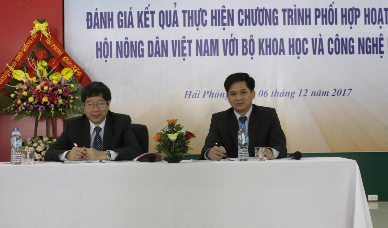 Cần đẩy mạnh liên kết giữa nông dân, doanh nghiệp để phát huy lợi thế địa phương.Sở Khoa học và Công nghệ và Hội Nông dân các tỉnh cần xây dựng kế hoạch cụ thể về nội dung ứng dụng KH&CN trong nông nghiệp, đẩy mạnh liên kết giữa nông dân với doanh nghiệp giúp bà con tham gia trực tiếp vào chuỗi sản xuất khép kín.Đặc biệt, các Sở KH&CN cần chú trọng đến việc bảo hộ sở hữu trí tuệ cho các sản phẩm hàng hóa, xây dựng thương hiệu, phát huy lợi thế địa phương.Thứ trưởng Bộ KH&CN Trần Quốc Khánh cho biết tại Hội nghị sơ kết đánh giá kết quả thực hiện Chương trình phối hợp hoạt động giữa HND Việt Nam với Bộ KH&CN năm 2017 được tổ chức tại Tp.Hải Phòng ngày 06/12/2017.Hội nghị do Hội Nông dân Việt Nam phối hợp với Bộ Khoa học và Công nghệ (KH&CN) tổ chức.Tham; dự Hội nghị còn có đồng chí Phạm Tiến Nam, Phó Chủ tịch Ban chấp hành Trung ương Hội Nông dân Việt Nam; đại diện cán bộ, lãnh đạo một số đơn vị trong Bộ KH&CN; cùng sự tham dự của các đại diện Hội Nông dân và Sở KH&CN của 16 tỉnh khu vực miền núi phía Bắc.Thứ trưởng Trần Quốc Khánh và ông Phạm Tiến Nam chủ trì Hội nghị