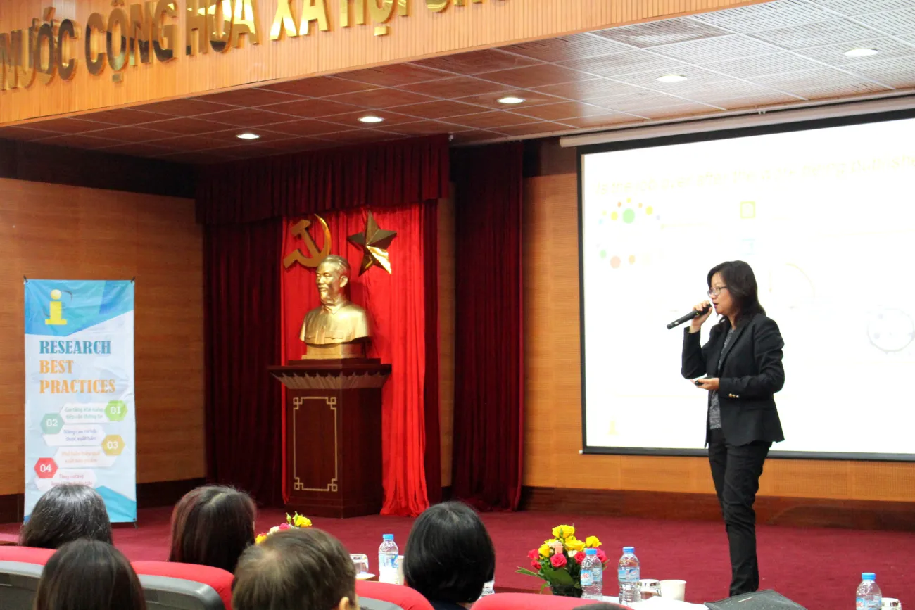 Sáng ngày 20/4/2016, tại Viện Hàn lâm Khoa học và Công nghệ Việt Nam, Trung tâm Thông tin - Tư liệu đã tổ chức Hội thảo "Giải pháp tổng thể hỗ trợ chu trình nghiên cứu khoa học".Tại Hội thảo, các nhà khoa học đã chia sẻ kinh nghiệm viết bài và gửi công bố, đặc biệt là công bố quốc tế, đối với các công trình nghiên cứu khoa học.TS.Nguyễn Xuân Nhiệm, Viện Hóa sinh biển trao đổi với các đồng nghiệp về cách viết một bài nghiên cứu khoa học, những kỹ năng mềm cần có, việc chú ý đến từng chi tiết trong báo cáo, những điều nên và không nên khi trình bày nghiên cứu, cách lắng nghe và chọn lọc được phản hồi hữu ích,.Còn TS.Nguyễn Quảng Trường, Viện Sinh thái và Tài nguyên Sinh vật lại giới thiệu đến các học giả một lĩnh vực nghiên cứu khác, về công bố các loài mới đối với thế giới.Trong phần trình bày của mình, TS.Trường nhấn mạnh vai trò của công bố kết quả nghiên cứu, đó không chỉ đơn thuần là việc khẳng định kết quả nghiên cứu đạt mức độ nào, mà việc công bố này, xét về nhiều mặt là có lợi cho môi trường, động vật, thực vật, sinh cảnh.Ví dụ về điều này, TS.Trường đưa dẫn chứng về số cá thể Tê giác ở Việt Nam, vấn nạn săn bắt trộm tê giác đã dẫn đến việc tuyệt diệt loài tê giác tại Việt Nam, việc công bố những số liệu này đã khiến cả thế giới phải rùng mình, từ đó, phát động hàng loạt chiến dịch bảo vệ tê giác, tuyên truyền nhận thức đúng đắn về tác dụng của sừng tê giác.Hội thảo còn có sự góp mặt củadiễn giả Jennifer Yong - Chuyên gia tư vấn giải pháp của iGroup Asia Pacific.Với kiến thức chuyên sâu về những giải pháp thông tin trong lĩnh vực xuất bản, bà đã góp phần thiết lập sự kết nối trong hệ sinh thái nghiên cứu giữa thư viện và nhà nghiên cứu.Một trong những dự án lớn mà bà thực hiện là xây dựng hệ thống thư viện ảo của Brunei.Với tư cách là nhà tư vấn, Jennifer đã tích cực phổ biến kinh nghiệm nghiên cứu hiệu quả thông qua các nguồn dữ liệu uy tín, chất lượng, các công cụ phân tích và nâng cao hiệu quả nghiên cứu của cá nhân và đơn vị.Diễn giả Jennifer Yong - Chuyên gia tư vấn giải pháp của iGroup Asia Pacific