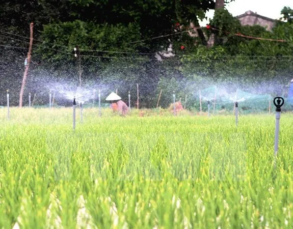Không ít những vùng cát trắng xóa, vùng đồi đã được bao phủ màu xanh tốt, nông dân có thu nhập khá dù nắng hạn nhờ áp dụng công nghệ tưới tiên tiến, tiết kiệm nước.Cả vườn măng tây, lạc, cà chua rộng 2,5ha của gia đình ông Hùng Ky, người dân tộc Chăm, ở thôn Tuấn Tú, xã An Hải, huyện Ninh Phước, tỉnh Ninh Thuận nằm trên vùng cồn cát phủ một màu xanh dưới giàn phun mưa đẹp mắt.Trong khi ở vùng đất cát nắng gió này, hầu hết người dân phải bỏ sản xuất thì ông Ky mỗi năm thu hoạch, trừ chi phí thu lãi 300-400 triệu đồng.Đây là thành quả có được khi gia đình ông chinh phục được vùng đất khô hạn này.Ông Hùng Ky cho biết, trước đây gia đình ông là hộ nghèo của xã.Sản xuất nông nghiệp gặp không ít khó khăn, bởi đây là vùng khô hạn, thiếu nước tưới.Để có nước sản xuất, ông Ky cũng như nông dân nơi đây phải khoan giếng lấy nước ngầm tại chỗ.Tuy nhiên, trong những năm gần đây, hạn hán liên tục kéo dài, nguồn nước ngầm càng trở nên khan hiếm và cạn kiệt.Thời gian trước, người dân nơi đây khoan giếng ở độ sâu 6-7m là có nước và có thể bơm tưới liên tục nhiều giờ liền.Nhưng vài năm gần đây phải khoan sâu tới 15-20m mới có nước, nhưng nguồn trong giếng cũng rất ít ỏi.Cùng với sự hỗ trợ kỹ thuật từ dự án “Xây dựng mô hình tưới nước tiết kiệm cho dân nghèo Nam Trung bộ tại Ninh Thuận," ông Hùng Ky đầu tư 80 triệu đồng vào hệ thống tưới phun mưa cho vườn rau màu của gia đình.“Hệ thống tưới này không chỉ giúp ông tiết kiệm được nhiều nước tưới, giảm 70% công lao động, giảm 50% phân bón mà năng suất lại cao gấp đôi.” - ông Ky cho biết.Vườn rau được trang bị hệ thống tưới nước tự động ở Quảng Ngãi