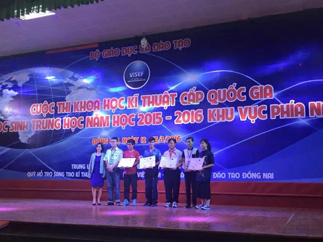 Công ty DTT Eduspec lựa chọn và trao các giải thưởng cho 4 đề tài vận dụng STEM xuất sắc nhất tại cuộc thi Khoa học kỹ thuật ViSEF 2016 khu vực phía Nam do Bộ GD-ĐT tổ chức từ ngày 12 đến ngày 15/3 tại TP Biên Hòa, Đồng Nai.Tham gia cuộc thi có 33 đơn vị tham gia bao gồm 32 sở GD&ĐT và 1 Trường PT Năng khiếu của ĐHQG TP.Hồ Chí Minh).Tổng số dự án dự thi là 206 dự án, trong đó cấp THPT là 160 dự án của 279 học sinh; cấp THCS là 46 dự án của 79 học sinh.Các đề tài dự thi ở 19 lĩnh vực khoa học kỹ thuật và được học sinh thuyết trình giới thiệu tại khuôn viên trường Đại học Đồng Nai.Trong đó, có nhiều đề tài thuộc chủ đề công nghệ thông tin rất phù hợp với tiêu chí riêng về vận dụng STEM trong khoa học kỹ thuật như phần mềm hệ thống, phần mềm nhúng, xử lý dữ liệu, ngôn ngữ lập trình, máy thông minh, máy sinh học, các hệ thống giám sát điều khiển và các đề tài về IoT (Interner Vạn Vật).DTT Eduspec đã lựa chọn chấm giải và trao thưởng cho 4 đề tài ứng dụng STEM tại ViSEF khu vực phía Nam.Lễ trao giải cho học sinh đoạt giải trong cuộc thi Khoa học kỹ thuật cấp quốc gia cho học sinh trung học năm học 2015-2016 khu vực phía Nam.Ảnh: Ban tổ chức cung cấp