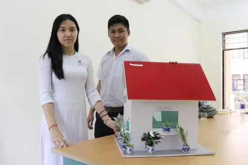 Kiến thức Hóa học, Sinh học… trong chương trình phổ thông cùng đam mê khám phá… đã giúp Quách Đức Huy và Trần Mỹ Duyên - HS lớp 10/14 trường THPT Trần Phú (TP Đà Nẵng) - sáng chế mô hình nhà giảm thiểu ô nhiễm cho dân cư khu vực cận bãi rác Khánh Sơn,TP Đà Nẵng.Sáng chế này đã đạt giải nhì tại cuộc thi Sáng tạo khoa học kỹ thuật toàn quốc năm 2016 khu vực phía Nam.Ý tưởng đến từ một bản tin.Quách Đức Huy chia sẻ ý tưởng thiết kế, cải tạo nhà ở giảm thiểu ô nhiễm cho dân cư khu vực lân cận bãi rác Khánh Sơn đến khá tình cờ khi em xem được bản tin nói về tình trạng người dân ở đây chặn không cho xe vào bãi rác vì mùi hôi nồng nặc.“Để có dữ liệu xây dựng các giải pháp cho đề tài, 3 cô trò phải đi tìm hiểu thực tế tại bãi rác Khánh Sơn và nhà dân ở khu vực lân cận.Lần đầu tiên, cô trò cứ cổng chính đi vào nên bị bảo vệ chặn lại, thế là phải quay ra, sau hỏi thăm mới biết cách “đi chui” từ nhà dân vào” – cô Trần Thị Thu Nga, GV chủ nhiệm cũng đồng thời là GV hướng dẫn đề tài của Huy và Duyên kể.“Nhà ở của các hộ dân ở khu vực lân cận bãi rác Khánh Sơn chủ yếu là nhà cấp bốn, ngoài ra, khu vực này còn gần với công trường khai thác đá nên người dân ngoài hít thở mùi hôi từ bãi rác còn phải hứng chịu cả bụi đá.Qua tìm hiểu, chúng em còn nhận thấy người dân còn bị nhiễm khí độc do đốt rác thủ công khi những người nhặt rác đốt các loại nhựa thu lượm được để lấy lõi đồng, các đám cháy này chứa rất nhiều khí độc và thường cháy âm ỉ, kéo dài” - Huy cho biết.Sau lần khảo sát đầu tiên, Đức Huy và Mỹ Duyên cùng cô giáo còn trở lại khu vực Khánh Sơn thêm 3 lần nữa để đo các thông số kỹ thuật có liên quan, tiến hành thực nghiệm tại một hộ dân.Để có máy móc đo đạc, cô Thu Nga phải liên hệ với Trung tâm nghiên cứu bảo vệ môi trường của ĐH Đà Nẵng mới có đủ các thiết bị đo khí và phân tích.Nguyên tắc “rẻ, bền và dễ thực hiện, áp dụng được trên ngôi nhà mà người dân đang ở” được Huy và Duyên ưu tiên khi tìm các giải pháp xây dựng, cải tạo nhà nhằm giảm thiểu ô nhiễm bởi đại đa số dân cư sống ở các khu vực này là những người nghèo, thu nhập thấp.“Giải pháp sử dụng hệ thống cây xanh có tác dụng lọc khí, hấp thụ các chất gây ô nhiễm, diệt muỗi, các loại côn trùng khác, xua đuổi rắn…để cải thiện không gian sống như trồng cây bạc hà, cây hành tăm xung quanh nhà; bố trí trồng cây lưỡi hổ, lô hội, lan ý, dương xỉ… trong nhà vẫn là giải pháp chính của ý tưởng” – Huy cho biết.Ngôi nhà kỳ diệu.Ngoài giải pháp dùng hệ thống cây xanh lọc không khí, mô hình ngôi nhà giảm thiểu ô nhiễm cho người dân khu vực bãi rác Khánh Sơn của Đức Huy và Mỹ Duyên còn kết hợp sử dụng một số giải pháp kỹ thuật khác như sử dụng loại sơn có chứa TiO2 (Titan Đioxit) để sơn phủ lớp tôn lợp mái nhà và gạch lát sân nhằm oxi hóa khí độc; thiết kế hệ thống lam cửa linh hoạt xoay theo nhiều hướng; thiết kế hệ thống cửa lưới cho cửa chính và cửa sổ bằng sợi thủy tinh bọc nhựa.Trần Mỹ Duyên chia sẻ: “Ngoài tìm kiếm các tài liệu, thông tin trên mạng, trong đó có những thông tin em phải dịch từ tiếng Anh, có những kiến thức chúng em chưa học đến nên phải nhờ đến sự hỗ trợ, tư vấn của thầy, cô giáo&rdquo.Từ những kiến thức tổng hợp được, Duyên và Huy sử dụng sơn phủ có chứa các hạt nano titan điôxít (TiO2) cho mái nhà và cho gạch lát sân nhà.Huy Đức và Mỹ Duyên với mô hình ngôi nhà giảm thiểu ô nhiễm môi trường cho dân cư khu vực lân cận bãi rác Khánh Sơn, nơi tập trung rác của cả thành phố Đà Nẵng