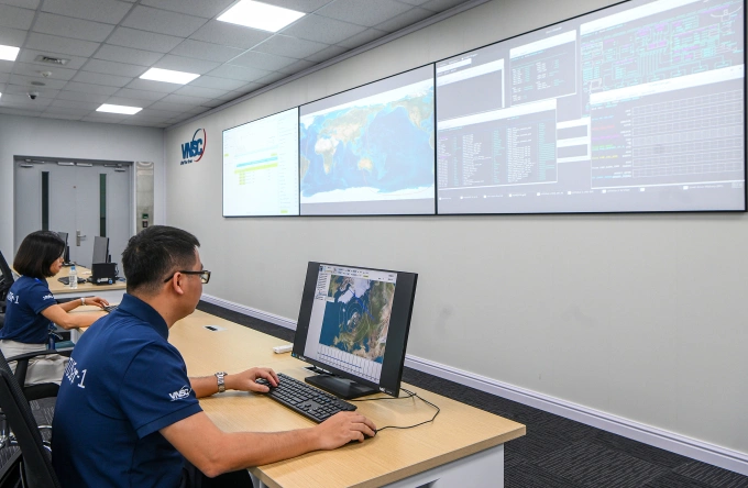 Trung tâm điều khiển và vận hành vệ tinh tại Khu Công nghệ cao Hòa Lạc - Hà Nội. Ảnh: Giang Huy