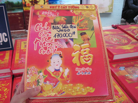 Lịch bloc siêu đại là điểm nhấn của thị trường lịch Tân Mão 2011. Ảnh: T.P