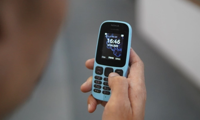 Một người sử dụng điện thoại "cục gạch" trước ngày tắt sóng 2G, tháng 10/2024. Ảnh: Lưu Quý