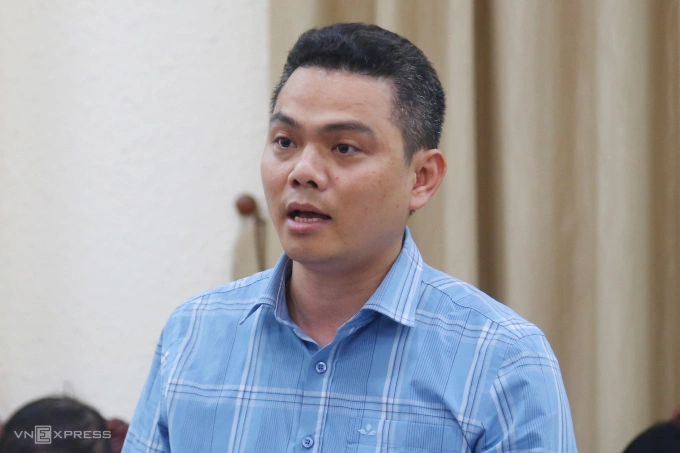 Thiếu tá Trần Duy Hiển tại hội thảo, chiều 14/5. Ảnh: Phạm Dự
